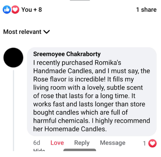 Bring warmth and comfort into your home with my homemade candles, made with all-natural ingredients for a clean, safe burn. Each candle is designed with a long-lasting scent that gently lingers, creating a cozy atmosphere every day. With their slow burning time, these candles can last for months of use, making them both luxurious and practical. These candles include a wide variety of unique fragrances to match any mood or season