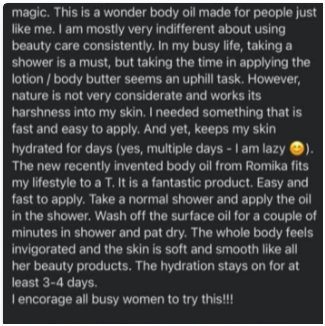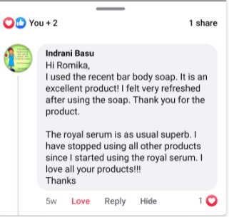 This sérum Royal was initially custom made for her. She has been using branded serum from India for last couple of years but felt having a fresher product will be more beneficial.