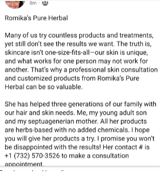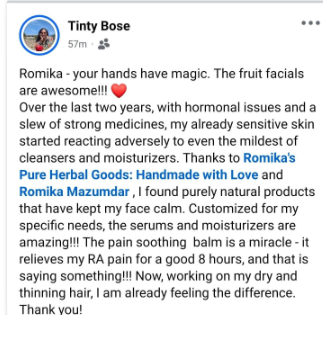 I Am Romika Mazumdar Saha. My Aim is to take care of our skin and hair and bring out our natural beauty without use of chemicals.